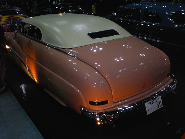 '50年頃のマーキュリーは近年のカスタムカルチャーの世界ではベースモデルとして1、2を争う人気車ですね。 ホットロッドカスタムショーでも極端にチョップされたルーフとロワリングされたべたべたの車高のマーキュリーが目を引いていました。